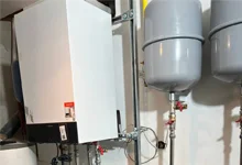 Монтаж газового конденсационного котла, бойлера и насосного оборудования для системы отопления частного дома в г. Днепр. После установки выполнена проверка оборудования.