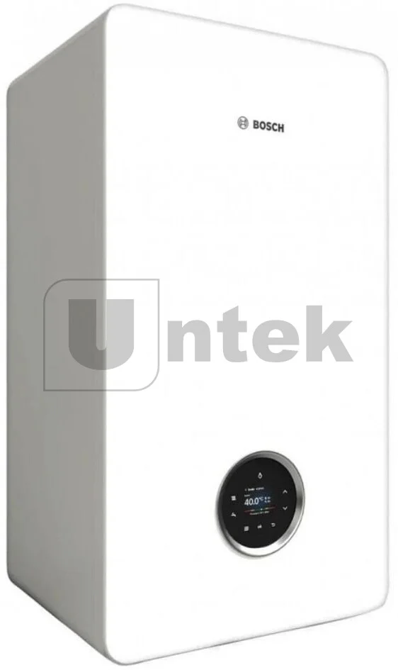 Настенный конденсационный одноконтурный котел (белый); мощность отопления 6,2-43,5 кВт; коэффициент использования энергии 108,5%; модуль управления Bosch Heatronic 4; теплообменник из алюминий-кремниевого сплава; габаритные размеры ВхШхГ – 780х440х365 мм.; вес – 52 кг.