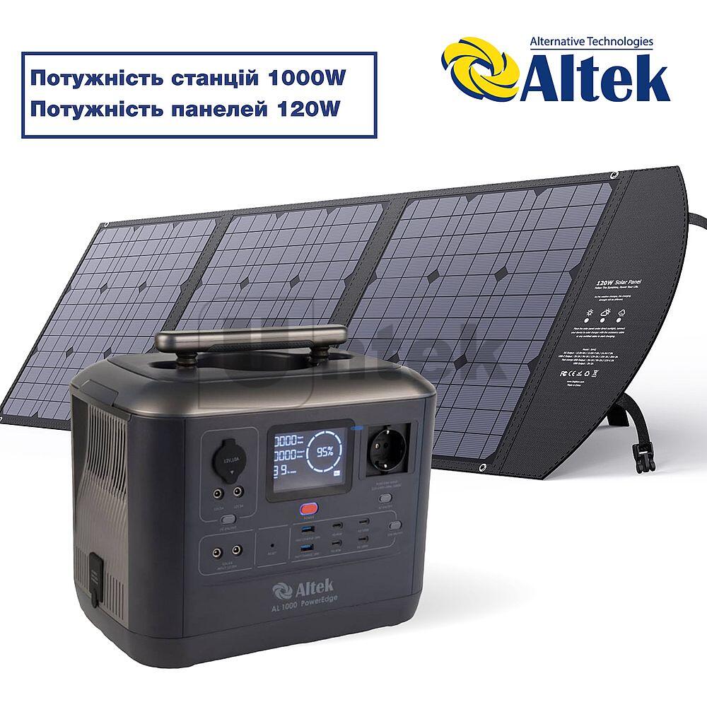 Комплект зарядна станція CP 1000+ панель розкладна 120W ALT-120, чорна Altek 2117043
