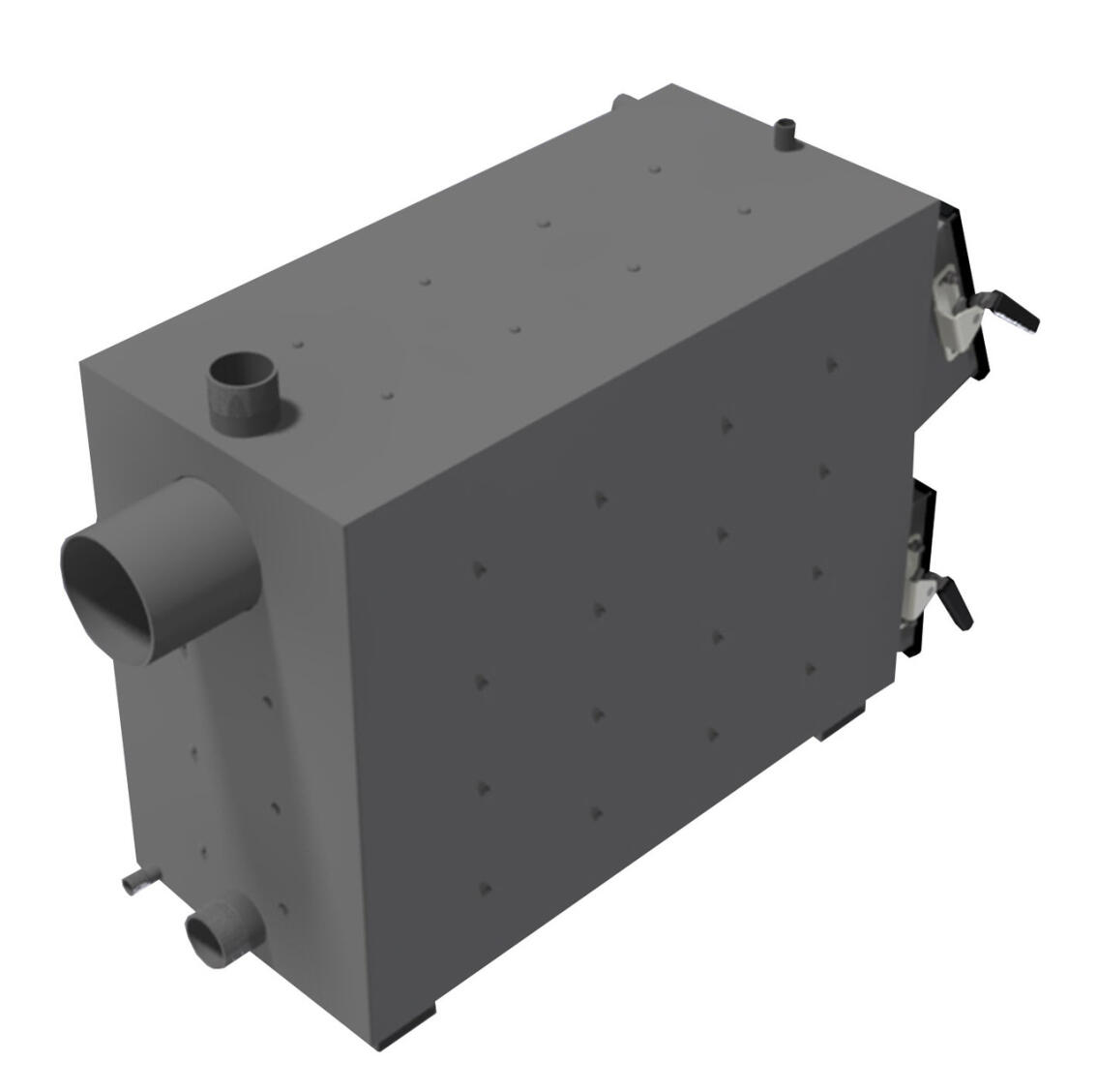Корпус котла виготовлений у формі паралелепіпеду з подвійними стінками, які розділені водними перегородками. На зовнішній поверхні корпусу під декоративною обшивкою закріплена теплова ізоляція.