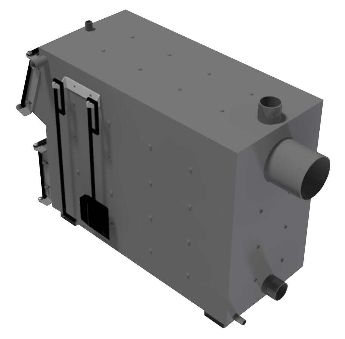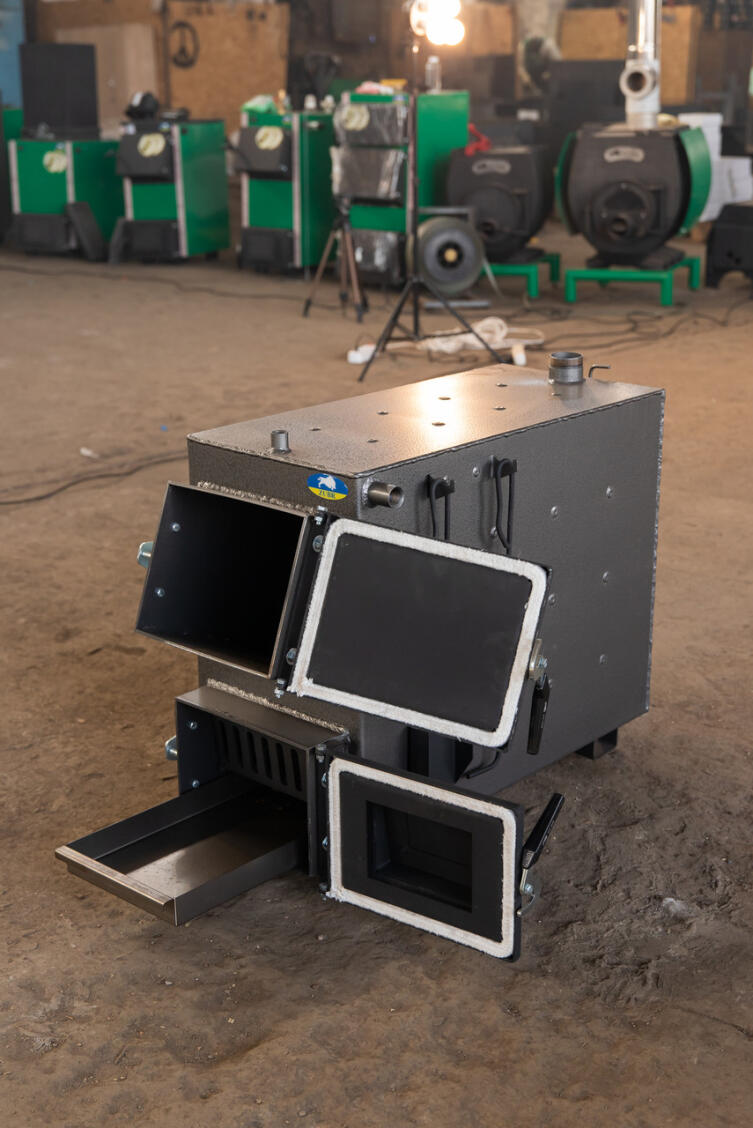 Зола, яка утворюється в процесі згоряння палива, зсипається в нижню частину корпусу.
