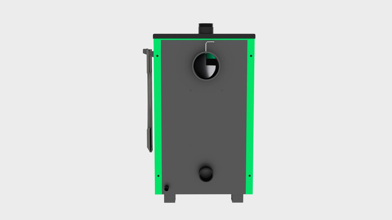Корпус котла виготовлений у формі паралелепіпеду з подвійними стінками, які розділені водними перегородками. На зовнішній поверхні корпусу під декоративною обшивкою закріплена теплова ізоляція.