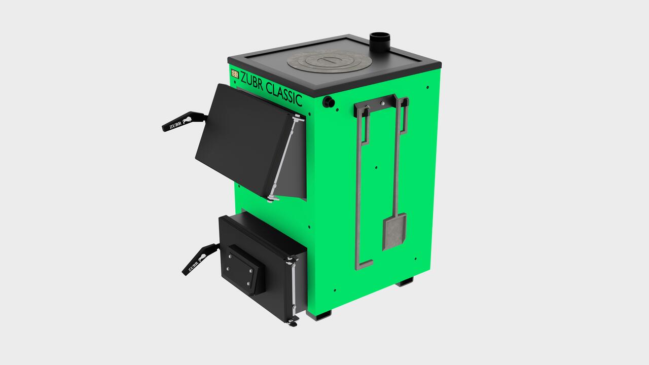 Твердопаливні котли Zubr Classic виготовлені згідно з ДСТУ 20548-93. Під час виготовлення котлів використовується жароміцна, котлова сталь. Застосування котлової сталі є запорукою зносостійкості та міцності котла. Завантажувальна камера котла та теплообмінник виготовлені зі сталі завтовшки 5 мм.