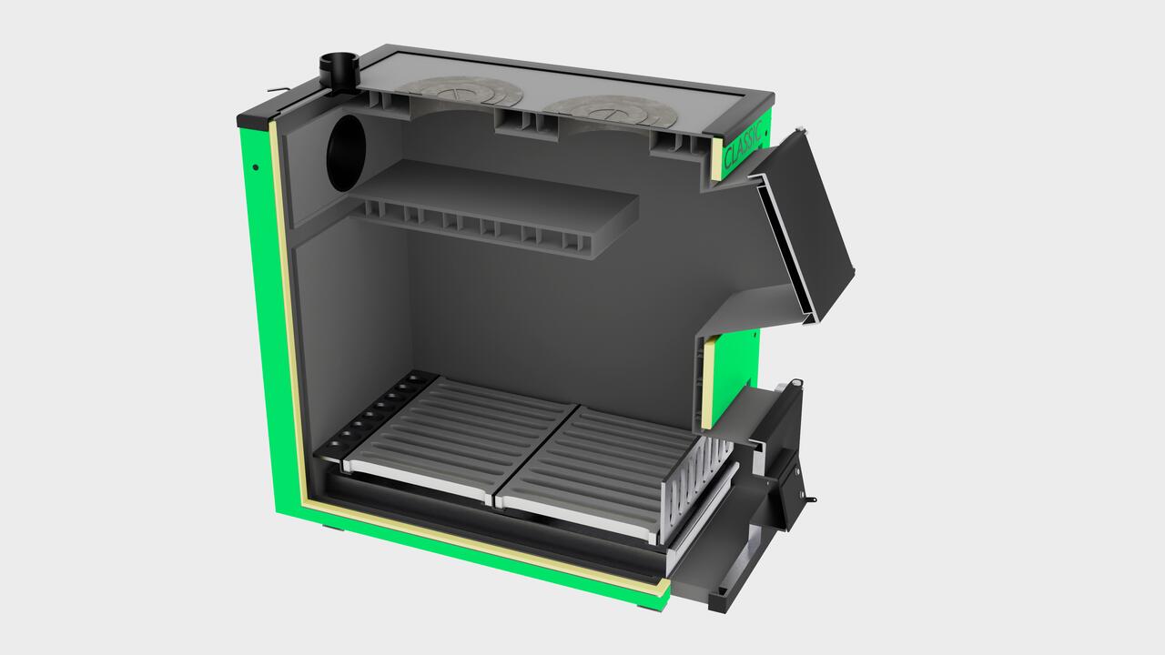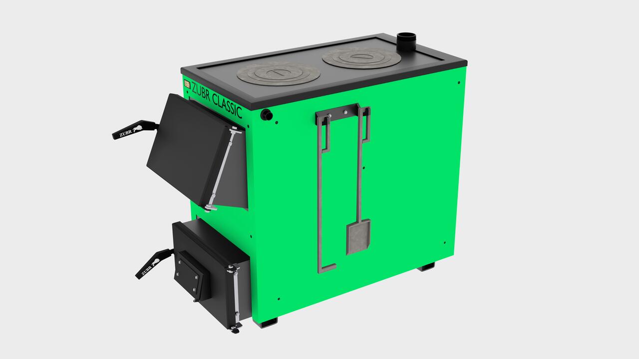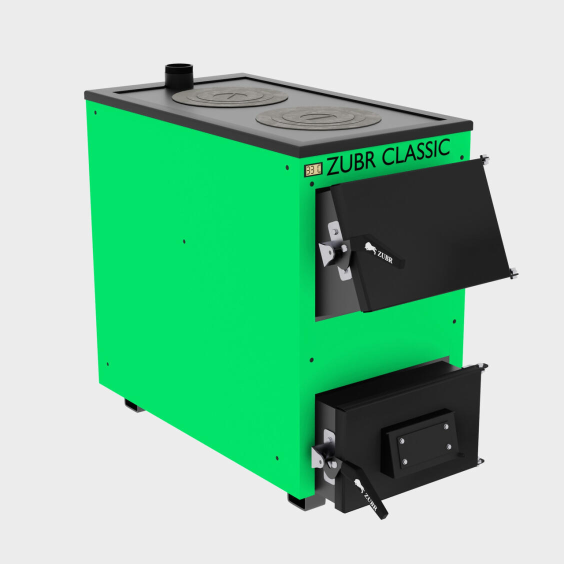 Твердопаливні котли Zubr Classic виготовлені згідно з ДСТУ 20548-93. Під час виготовлення котлів використовується жароміцна, котлова сталь. Застосування котлової сталі є запорукою зносостійкості та міцності котла. Завантажувальна камера котла та теплообмінник виготовлені зі сталі завтовшки 5 мм.