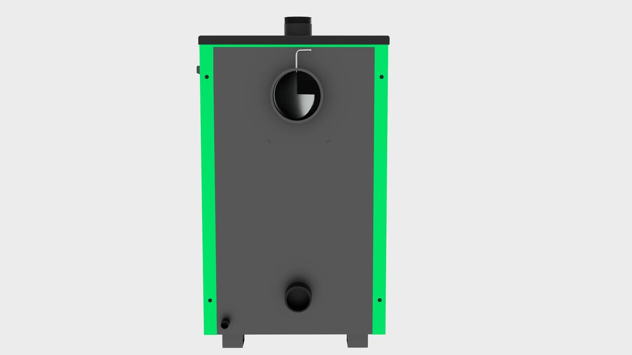 Корпус котла виготовлений у формі паралелепіпеду з подвійними стінками, які розділені водними перегородками. На зовнішній поверхні корпусу під декоративною обшивкою закріплена теплова ізоляція.