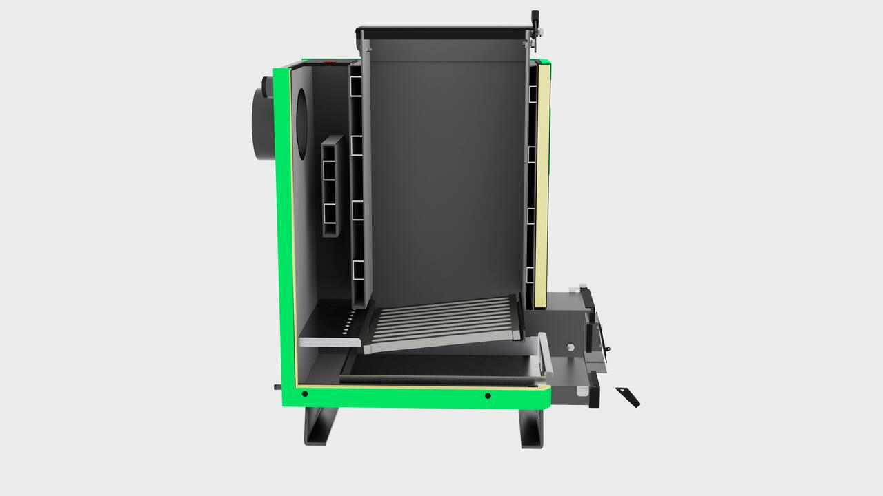 Цей котел призначений для спалювання будь-якого типу палива, вугілля, брикети, дрова (сухі та вологі), тріска, тирса та побутові відходи. Іншими словами, котел-утилізатор. Унікальним є те, що котел під час спалювання вологих дров ви не побачите ні конденсатів, ні смол. Тривалість роботи котла на одному завантаженні дров від 8 до 12 годин (іноді й більше), на вугіллі до доби. Котел має форсунку для вторинного допалювання газів, цим істотно збільшується ККД котла.