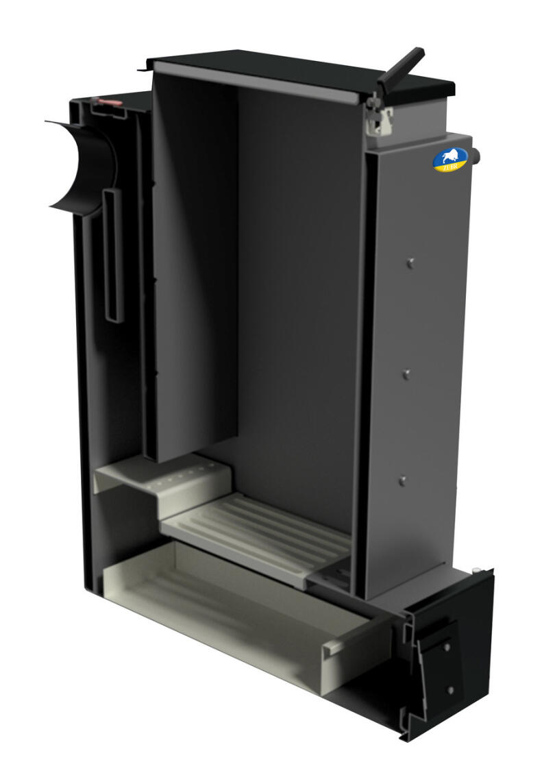 Котел Zubr належить до пристроїв шахтного типу. Тобто його основна частина є вертикальною топкою й розміщеною біля неї теплообмінною камерою. Камери розділяє водяна перегородка. Під перегородкою є отвір, через який дим із топки потрапляє в теплообмінну камеру.