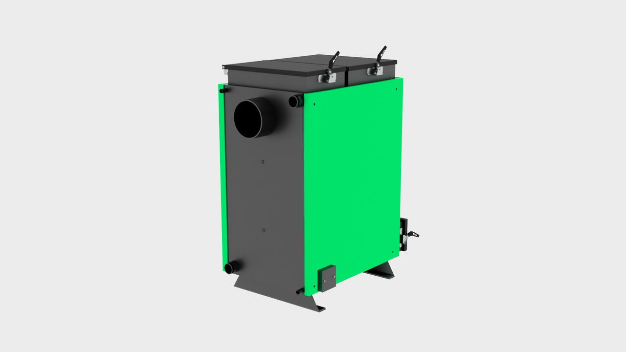 Цей котел призначений для спалювання будь-якого типу палива, вугілля, брикети, дрова (сухі та вологі), тріска, тирса та побутові відходи. Іншими словами, котел-утилізатор. Унікальним є те, що котел під час спалювання вологих дров ви не побачите ні конденсатів, ні смол. Тривалість роботи котла на одному завантаженні дров від 12 до 15 годин (іноді й більше), на вугіллі до 1,5 доби. Котел має форсунку для вторинного допалювання газів, цим істотно збільшується ККД котла.